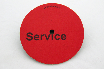 In die Mitte des Bierdeckels wurde ein kleines Loch hineingestanzt. Durch das Loch kann eine Schnur gefädelt werden und der Bierdeckel kann aufgehängt oder an etwas anderes drangehängt werden.