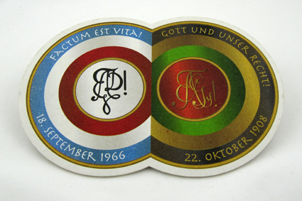 Die Form des Doppelbierdeckels wird verwendet um Flasche und Glas auf einem Bierdeckel abstellen zu können.